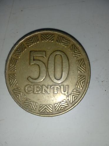 - Реверс: крупное значение номинала «50» и надпись «CENTŲ», орнаментальный бордюр