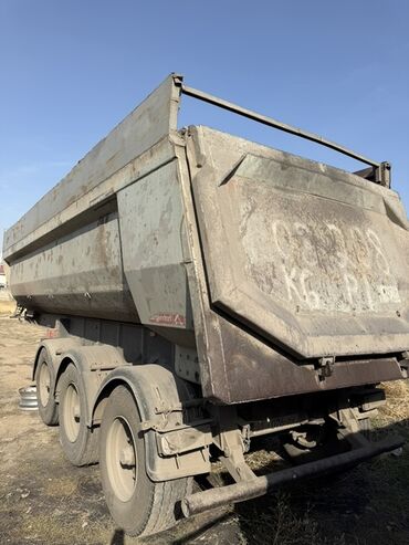 Полуприцеп-самосвал (трехосный) Описание: - Кузов: стальной/металлический, прямоугольный, усиленные борта, задний откидной борт. - Тип разгрузки: задняя, гидроцилиндр фронтального подъема. - Шасси...
