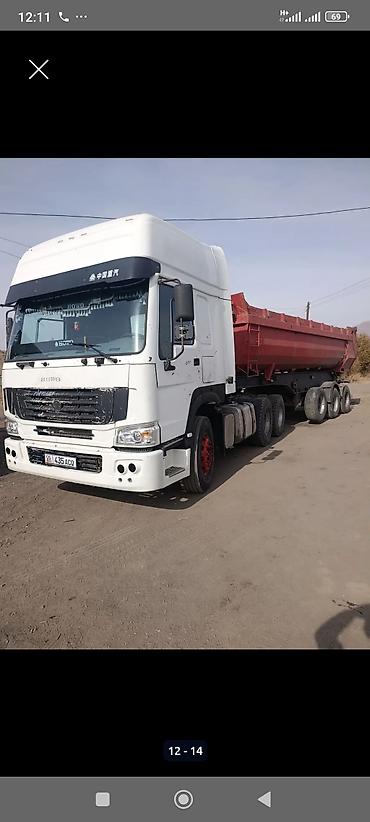 Комплект: седельный тягач HOWO с самосвальным полуприцепом, готов для работы в карьерах и на строительных объектах. Номера KG на авто.