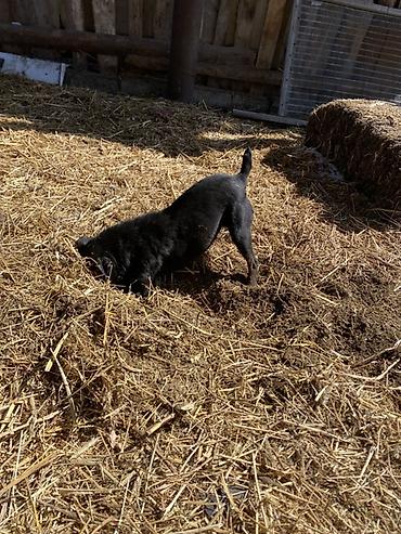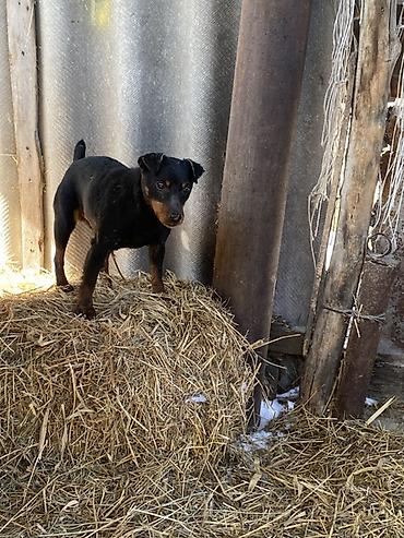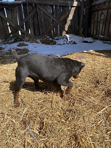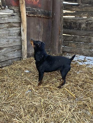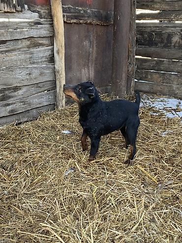 Ягдтерьер, кобель. Окрас черный с рыжими подпалинами. Крепкий, компактный, мускулистый корпус, короткая плотная шерсть, купированный хвост. Выраженный охотничий инстинкт: работает на диких зверей ознакомлен с барсуком, шалакалам, и лисами в норе и воде работает отлично. 3 года.