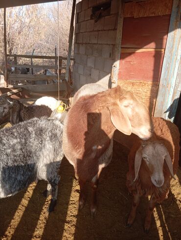 - Порода/тип: крупные длинноухие овцы (вероятно романово-кросс/местные мясные линии). На фото видно животных разной масти: рыже-коричневые, серо-черные, пятнистые.