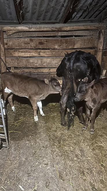 - Порода: черная корова (молодая матка), телята — помеси бурого окраса с белыми отметинами.