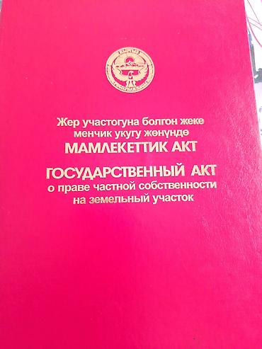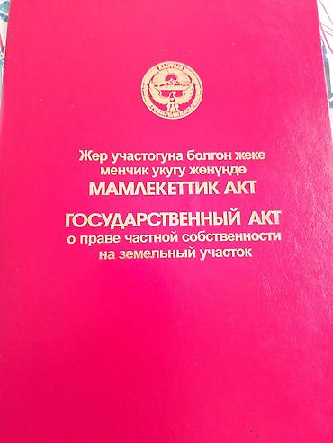 Государственный акт о праве частной собственности на земельный участок (Кыргызская Республика). Описание: - Официальный красный бланк с гербом и тиснением золотым шрифтом. - Надписи на кыргызском ...
