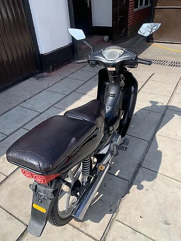 Скутер/мопед, городского типа, черный цвет. Особенности и комплектация: - Компактный пластиковый обвес с агрессивной оптикой - Галогенные фары, указатели поворота в передней маске - Зеркала заднег...
