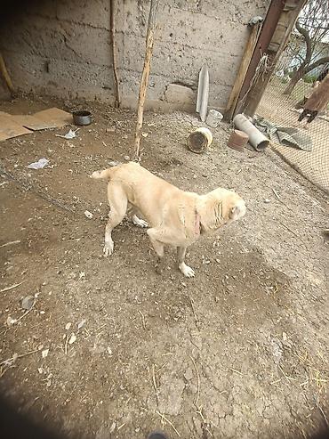 Собака среднего/крупного размера, короткошёрстная, светло‑рыжего (песочного) окраса с белыми отметинами на лапах и груди. Пропорциональное телосложение, мощные лапы, широкая голова, висячие уши. Нос чёрный, хвост средней длины. На шее — ошейник, используется цепь.
