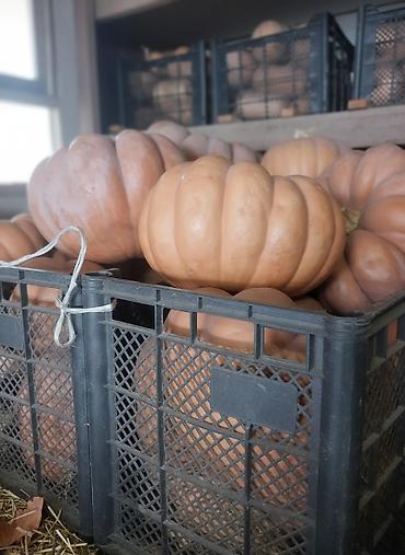- Крупноплодные рифлёные тыквы и баттернат (мускатная форма) с плотной оранжевой мякотью.