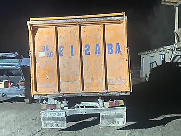 Грузовой автомобиль Mercedes-Benz с высоким металлическим бортовым кузовом (оранжевый фургонный отсек).