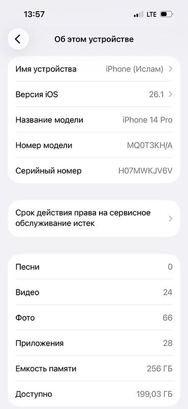 - Модель: iPhone 14 Pro (номер модели MQ0T3KH/A)