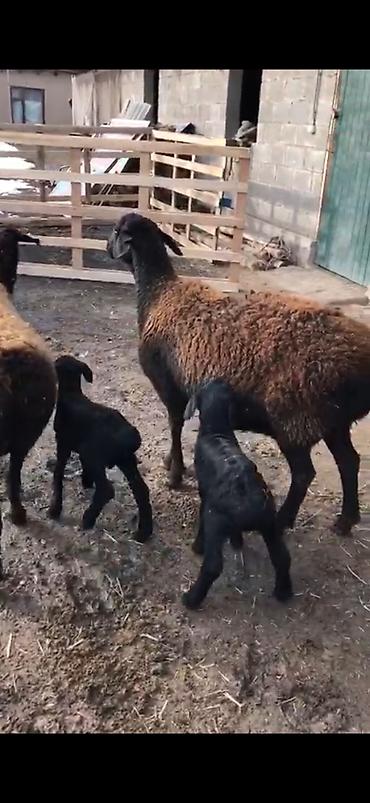 Продаются овцы мясного направления с ягнятами. На фото — матки тёмной масти (чёрно-каштановая шерсть, безрогие), ухоженные, с бирками на ушах. Ягнята черные, активные, на подсосе.