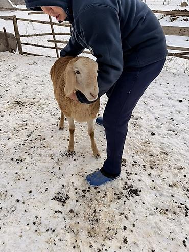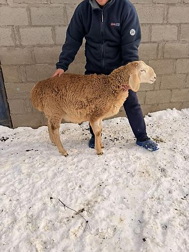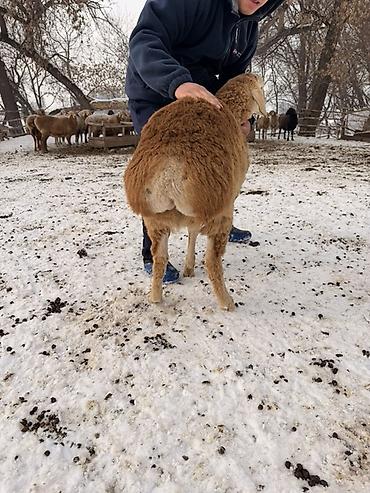 Молодая овца (вероятно курдючного типа, безрогая), рыже‑бурой масти с кремовой мордой и длинными отвислыми ушами. Плотное телосложение, хорошо выраженный курдюк, ровная спина, крепкие конечности. Шерсть средняя по длине, однородная, густая. Спокойный характер, легко даётся в руки. Подходит для разведения и откорма: мясное направление, хорошая выходность по туше благодаря развитому курдюку. Содержится в загоне, адаптирована к холодной погоде и уличному выпасу.