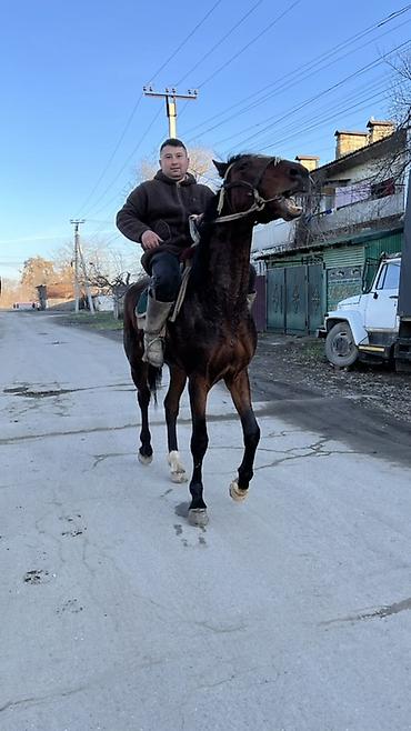 Ат сатылат Жашы 3 жаш жазга асый Бою 167+ Жоон чон ат тукумга жакшы Адрес село Спартак Лошадь верховая, гнедая масть. Крепкий костяк, широкая грудь, выраженная мускулатура. Высокая шея, гус...