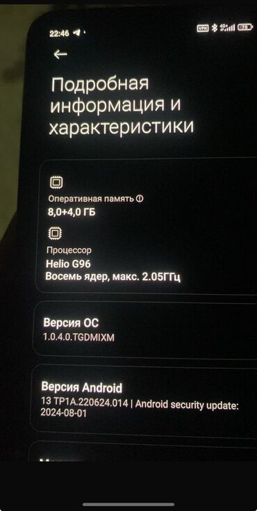 - Android 13 (с обновлением безопасности от 01.08.2024)