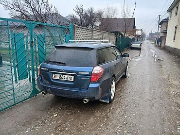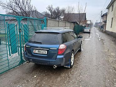 Срочно Subaru Legacy Wagon, с полным срочно приводом Symmetrical AWD. Универсал в синем цвете, на киргизских номерах (08 KG 864 ATD). Кузов BP – практичный и вместительный: большой багажник, складывающиеся задние сиденья, рейлинги на крыше.
