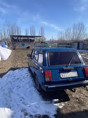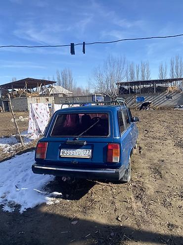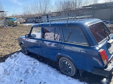 ВАЗ 2104, синий универсал. Классический задний привод, пятидверный кузов с просторным багажником и откидной дверью. На крыше установлен металлический багажник-рейлинг для длинномеров и грузов. Черная решетка радиатора, прямоугольные фары, массивные бамперы. На капоте вентиляционные решетки. Сзади — стеклоочиститель на двери багажника. Литые диски темного цвета, боковые зеркала прямоугольной формы. Окраска кузова в насыщенный синий, тонированные задние стекла. Российские номера региона 177. Отличный рабочий универсал для дачи, хозяйственных задач и перевозки.