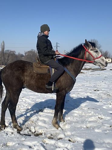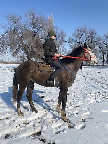 Лошадь верхового типа, темно-гнедой масти с белой отметиной на голове. На фото — укомплектована седлом и оголовьем с недоуздком и поводовыми ремнями. Корпус сухой, ноги ровные, копыта крепкие, хвост густой, шея средней длины, голова легкая с крупными ноздрями. Высокая посадка седока, удобная спина под седлом, выраженная холка. Лошадь спокойно реагирует на всадника, идет шагом и рысью, слушается поводы, держит ровный баланс. Подходит для прогулок, любительской верховой езды и хозяйственных выездов. Возможна работа в легкой упряжи при наличии соответствующей сбруи. Отличный вариант для начинающих и уверенных любителей, ищущих выносливую и неприхотливую верховую лошадь. Сбруя и седло на фото совместимы по размеру..