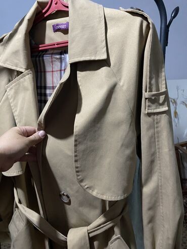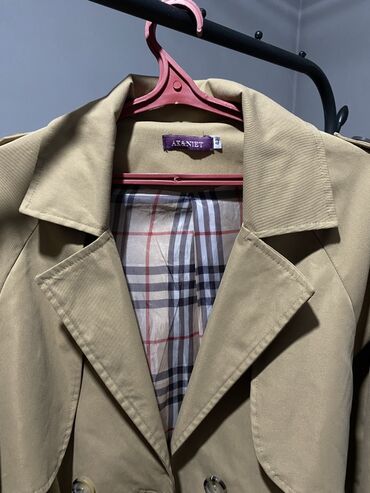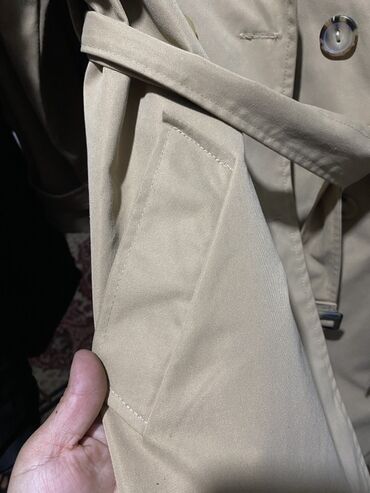 Бежевый тренчкот классического кроя. - Двубортный силуэт с лацканами