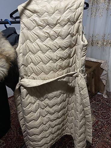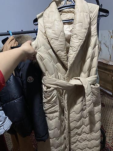 Стеганый удлиненный жилет без рукавов, цвет — бежевый.