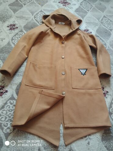 3) Демисезонная накидка/кардиган с капюшоном, цвет camel