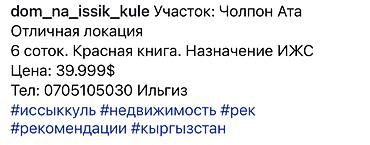 Продаётся земельный участок в Чолпон-Ата. - Площадь: 6 соток - Размеры: 20 × 30 м - Цена: 40 000 $ Подходит для индивидуального строительства или дачного дома: ровный рельеф, прямоугольная форма,...