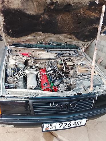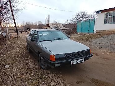 Audi 100 C3 (седан), ориентировочно конец 1980‑х – начало 1990‑х годов выпуска. Кузов серебристо‑серый с черными молдингами и бамперами, передние поворотники оранжевые. Колеса на стальных дисках. Номера KG.