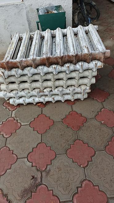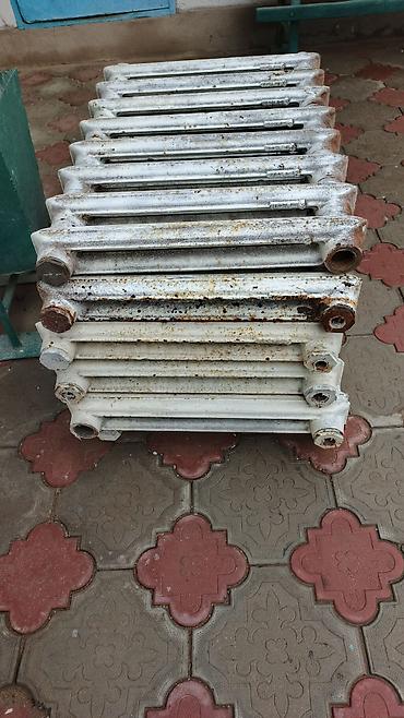 - Радиаторы секционные чугунные (тип МС или аналог). На фото — несколько батарей, каждая собрана из множества секций с боковыми резьбовыми подключениями. Подходят для работы в системах с естественной или принудительной циркуляцией, устойчивы к перепадам давления и температуре. Можно разбирать/наращивать секции под нужную мощность и ширину. Резьбы торцевых пробок видны на фото; межосевое расстояние стандартное для чугунных батарей (ориентир по габариту — низкие, «плоские» секции).