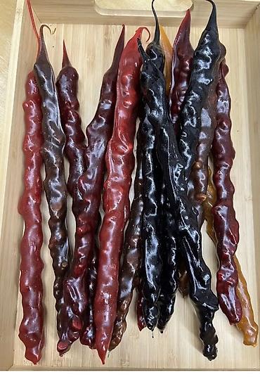 - Традиционная грузинская сладость: орехи, нанизанные на нить и покрытые густым виноградным/фруктовым пеламуши.