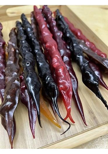- Форма: длинные палочки на нити, глянцевая поверхность; каждая палочка — отдельный вкус.