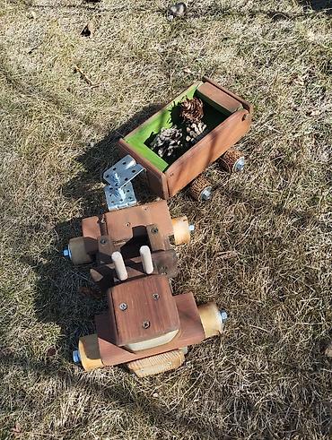 - Ручная работа из натурального дерева с элементами из металла (крепёж, шарниры сцепки).