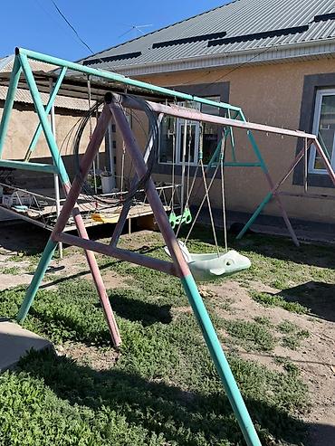 - Конструкция рассчитана для размещения на участке/во дворе; устойчивые треугольные опоры.