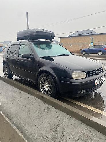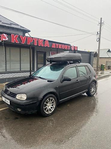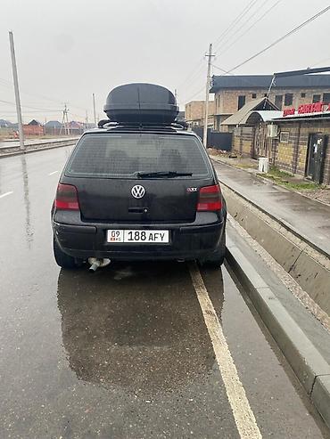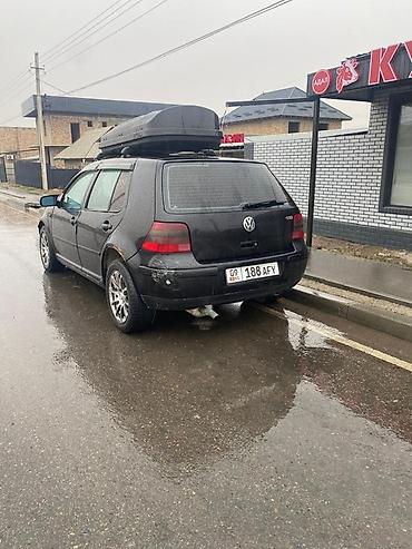 Volkswagen Golf IV хэтчбек, 4WD,6ступка,черный, 5 дверей. Бензин мотор (уточняйте по фото двигателя отсутствует; по виду выхлопа — турбонаддув не просматривается). Механическая коробка не подтверждена на фото; привод передний. Комплектация с эмблемой GTI/GLX на крышке багажника.
