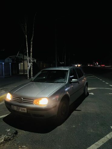 Volkswagen Golf IV, 5‑дверный хэтчбек, серебристый цвет кузова. Компактные габариты, классическая для модели форма с горизонтальной решеткой и круглой оптикой. Передний привод.