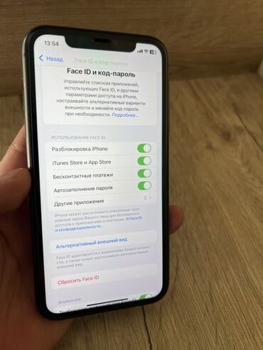 - Face ID: поддерживаются разблокировка, iTunes Store и App Store, бесконтактные платежи, автозаполнение пароля (активировано на скриншоте).