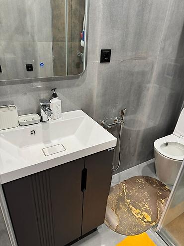 - Раковина с тумбой для хранения, зеркало с подсветкой/сенсором.