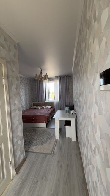- Комнаты со светлыми обоями и ламинатом, большие окна с плотными шторами и тюлем.