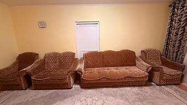 Классический комплект мягкой мебели из велюра/шенилла в карамельно-бронзовом оттенке с узором “пейсли”.