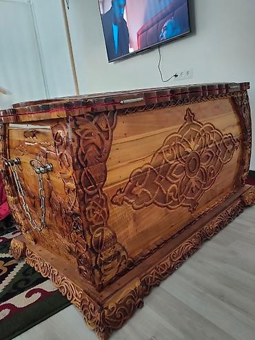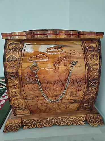 Сандык жыгачтан. колго жасалган. размер узундуну 100см , туурасы 50, бийиктиги 60см. Баасы 6000с. Акыбалы жакшы.