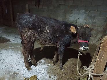 Бык год и даа месяц (молодняк мясного направления). - Окрас: буро-рыжий с белыми отметинами на голове и груди. - Рога небольшие, голова широкая, крепкая конституция. - Содержится на привязи в стой...