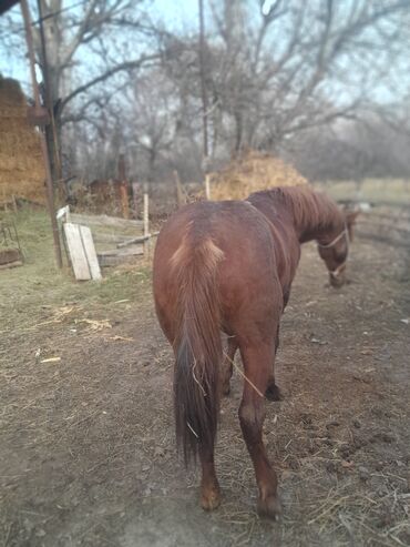 - Масть: рыжая/каштановая, густая грива и хвост.