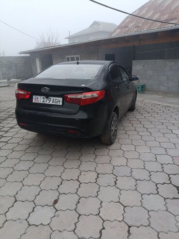 Kia Rio седан, черный цвет, на киргизских номерах (KG, регион 05). Кузов с фирменной решеткой Kia, тонировка по кругу, черные легкосплавные диски. Фары с дневными ходовыми огнями, задние фонари с...
