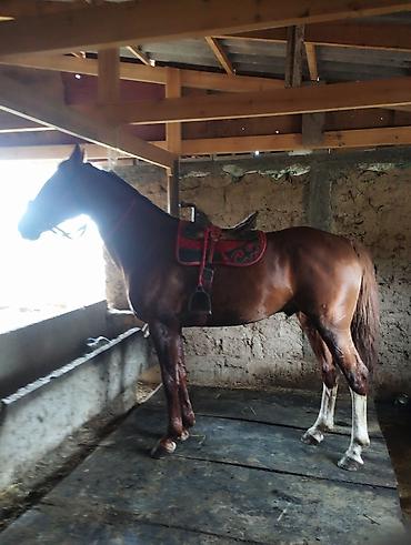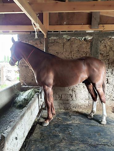 Жеребец 4 года , рост в холке 1,68. Полукровный - 80 % Английская с карачайцем. гнедая порода с черным хвостом и гривой. Стройный, высокий тип, выраженная шея и длинные ноги. Хорошо держит шаг и ...