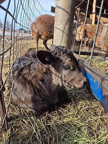 Телёнок мясного направления. - Молодой телёнок, коричневая длинная густая шерсть, компактное телосложение. - Уши с биркой идентификации. - Содержание в тёплом хлеву, приучен к поению из ведра. - П...