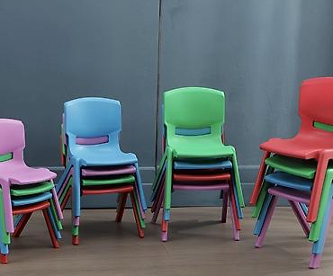 Размеры и комплектация на фото: представлены стопки из нескольких стульев разных цветов. Подходит для ясли с 1-4 года