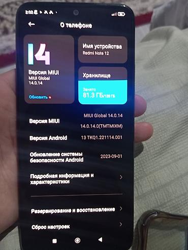 Redmi, Redmi Note 12, Б/у, 128 ГБ, цвет - Синий, 2 SIM