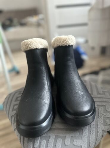 Женские черные ботинки/полусапоги на массивной подошве. - Материал