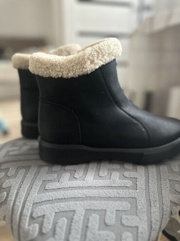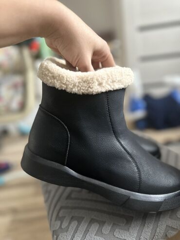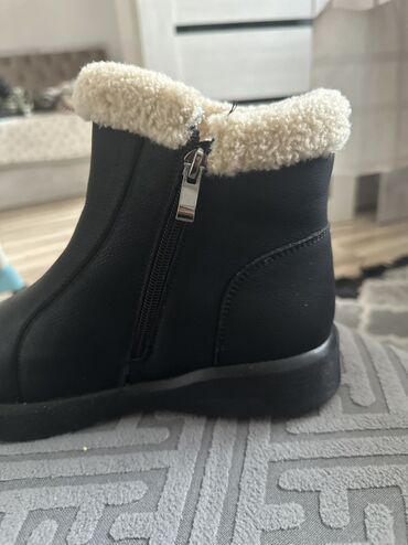Женские черные ботинки/полусапоги на массивной подошве. - Материал верха: черная кожа (визуально гладкая). - Подошва: высокая, рельефная, с глубоким протектором для устойчивости. - Застежки: молни...
