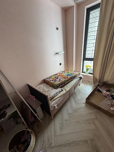 - Кровать №2 в светлом древесном оформлении с выкатными нижними ящиками для хранения постельного белья и игрушек. Боковая защитная планка у изголовья.