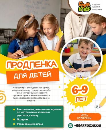 🌟 Продлёнка с питанием 🌟 📚 Помощь с уроками 🍽 Обед и ужин 🎨 Творчество и релакс 🤖 STEM-робототехника 🕛 12:00–18:00 👥 Группа до 12 детей 💰 17 000 сом 📍 5 мкр, 63/1 📞
