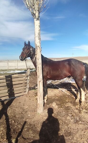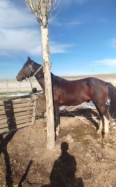 Бээ 5 жаш бооз колу буту соо ден соолугу чын жоош ! Лошадь (масть гнедая), вероятно кобыла, на привязи. Крепкий костяк, широкая грудь, выраженная мускулатура крупа. Конечности ровные, копыта т...