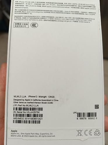 IPhone 13, модель A2482, цвет Midnight, 128 ГБ.