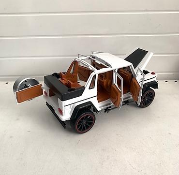 - Детализация: рельефный капот с черной вставкой, расширители колесных арок, боковые подножки, багажный отсек с откидной дверцей и накладкой под запаску.